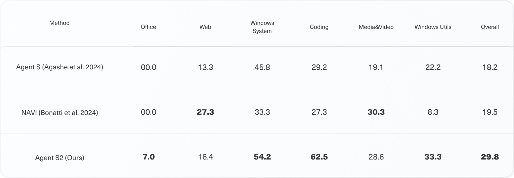 Building an agent that can use a computer like a human remains one of the most formidable milestones on the path toward artificial general intelligence. From executing open-ended digital tasks to navigating unfamiliar applications via GUIs, the problem space is vast, noisy, and highly dynamic. Today, we're thrilled to release the technical paper for Agent S2, a modular framework that has set new state-of-the-art performance on multiple computer-use benchmarks.