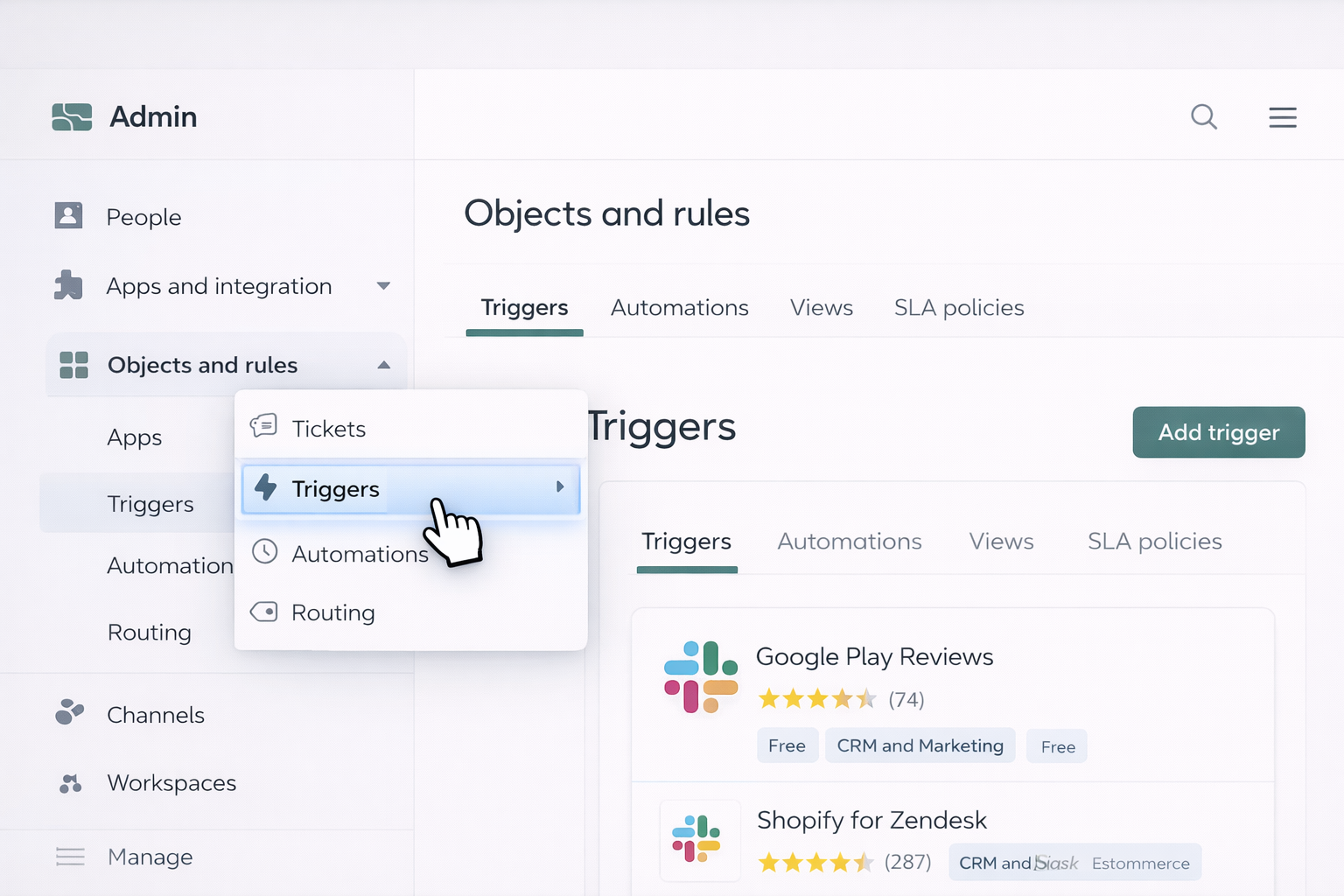 Zendesk’s native rules engine can orchestrate behavior across many Marketplace apps.