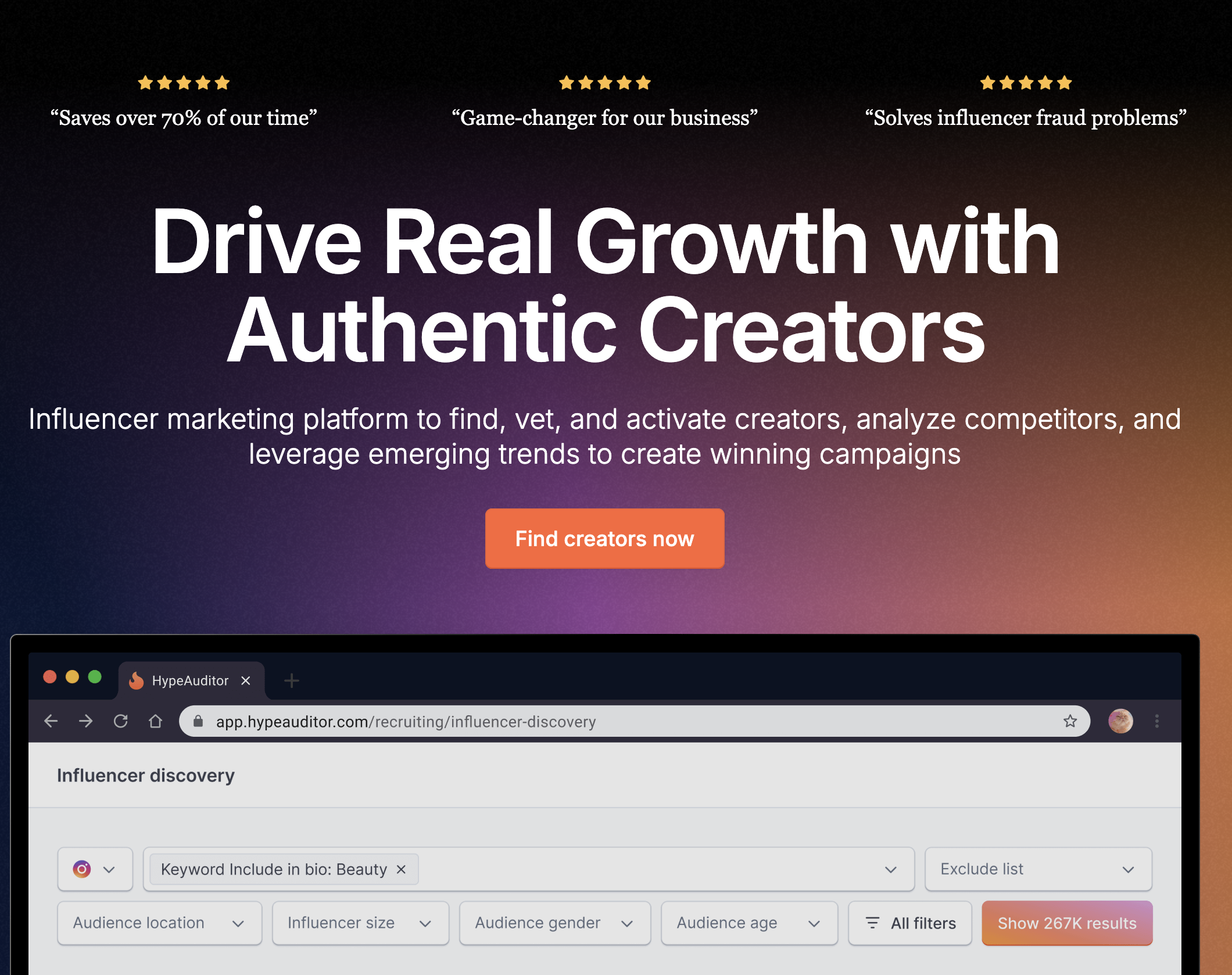 하는 일: 간질 YouTube 크리에이터 검색에 시청자 인구통계, 참여도 지표, 기본적인 진위 분석을 엔터프라이즈 플랫폼보다 훨씬 저렴한 비용으로 제공하는 경제적인 인플루언서 검색 플랫폼입니다.1,100만 명 이상의 인플루언서 프로필과 월 49달러의 시작 가격을 제공하는 Heepsy는 무료 도구 (채널 크롤러) 와 프리미엄 플랫폼 (Modash, HypeAuditor) 사이에서 최적의 위치를 차지하고 있습니다.