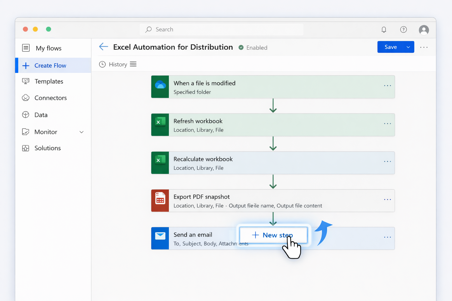 Use Power Automate to refresh and distribute MAKEARRAY-driven workbooks.