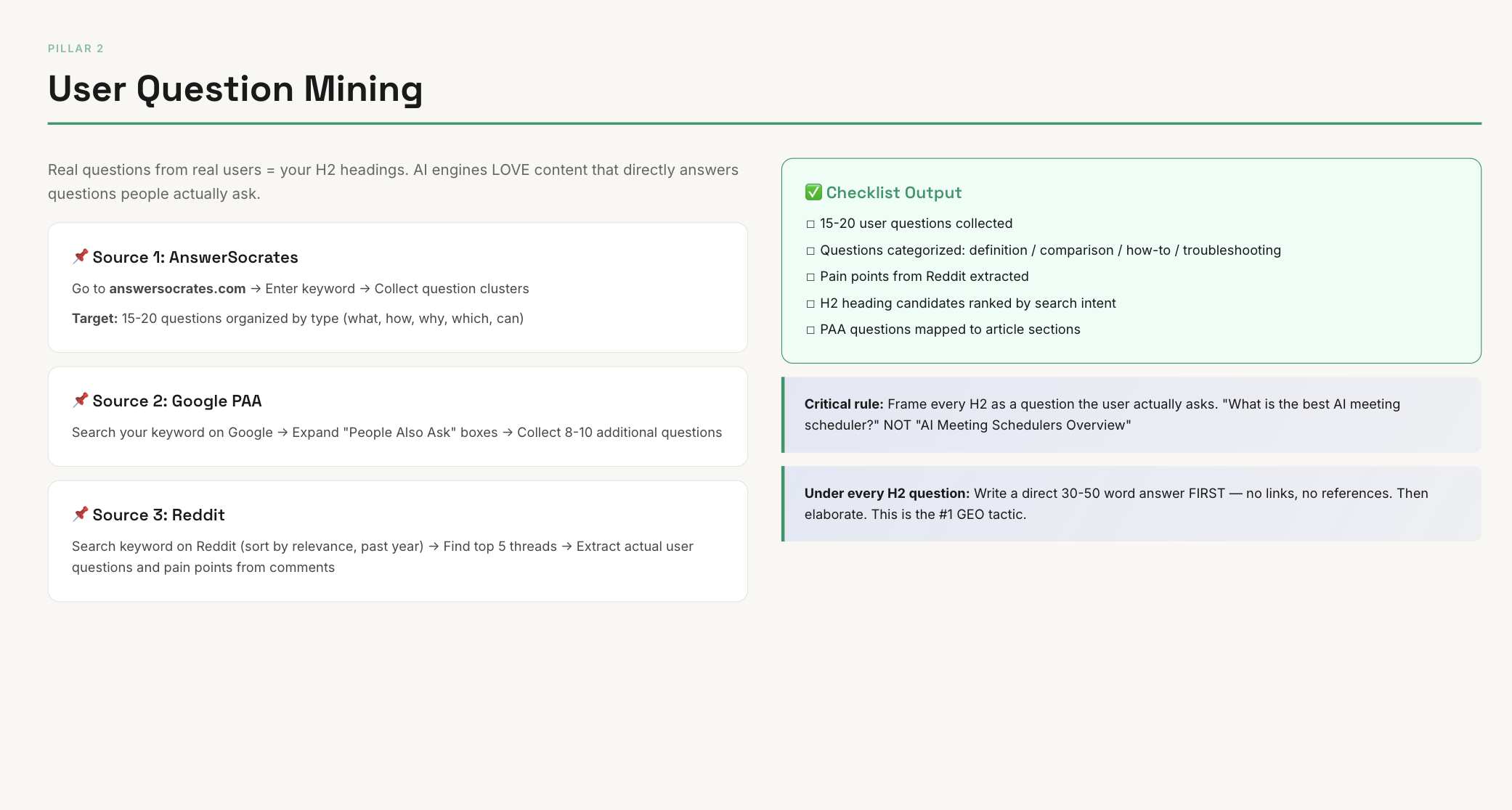SEO optimizes for discovery — getting your page in front of the user. GEO optimizes for extraction — making your content easy for AI to understand, trust, and cite.