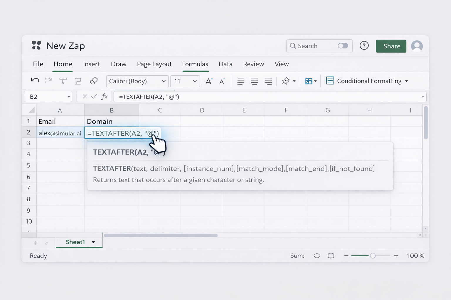 alex@simular.ai.=TEXTAFTER(A2, "@")simular.ai.