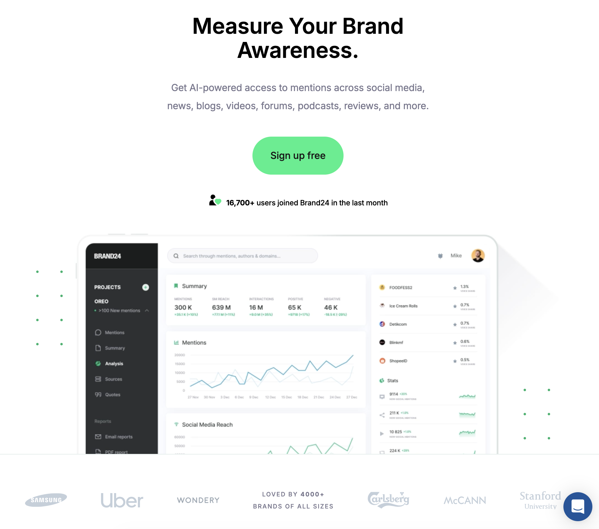 它能做什么: 提及 是一个社交监听平台,用于监控Reddit、Twitter、Facebook、Instagram、YouTube、新闻网站、博客和论坛上的品牌提及——总共超过10亿个来源。对于需要将Reddit监控作为更广泛的社交倾听策略(而不是仅限Reddit的分析)的一部分的团队,Mention提供了统一的仪表板,可同时在所有平台上进行情感分析、竞争基准测试和自动报告。