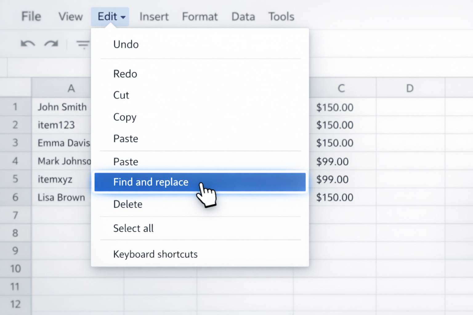When you want more control—or to clean data—use Find and replace.